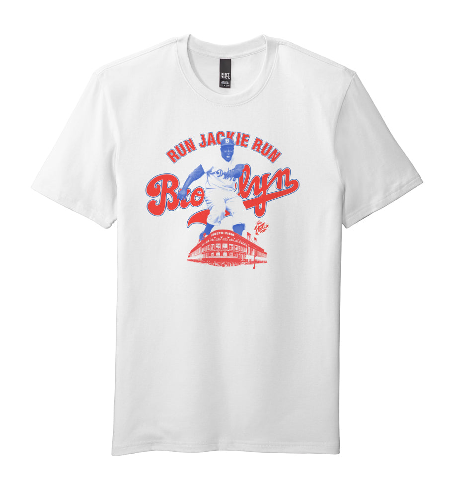This tee captures the moment: No. 42 flying down the line in Dodger blue, igniting Brooklyn and defying expectations on the biggest stage in baseball.